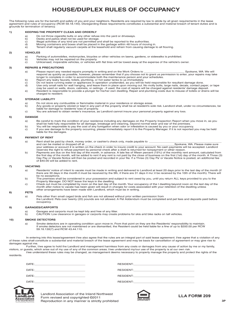 HOUSE/DUPLEX RULES OF OCCUPANCY