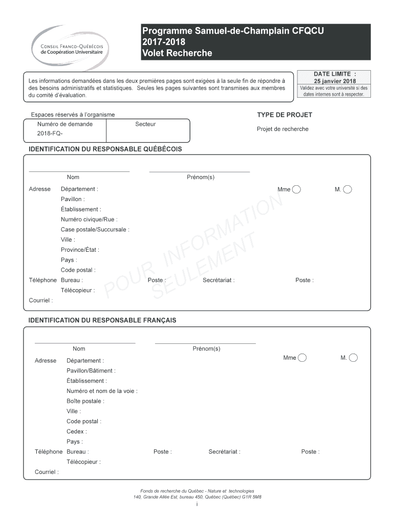 Get the free Programme Samuel-de-Champlain CFQC -201 Volet Recherche