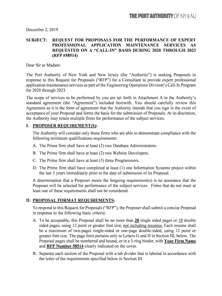 SUBJECT:REQUEST FOR PROPOSALS FOR THE PERFORMANCE OF EXPERT
