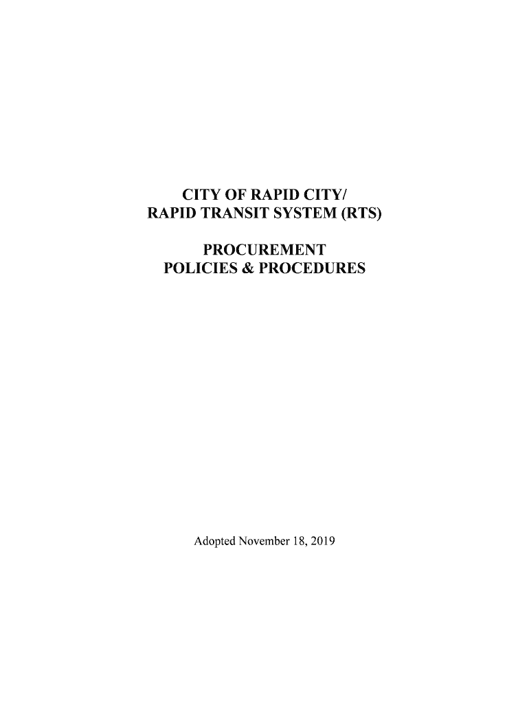 CITY OF RAPID CITY/ RAPID TRANSIT SYSTEM (RTS) PROCUREMENT POLICIES & PROCEDURESAdopted November 18, 2019TABLE OF CONTENTS. INTRODUCTION ..................................................................................................................................................