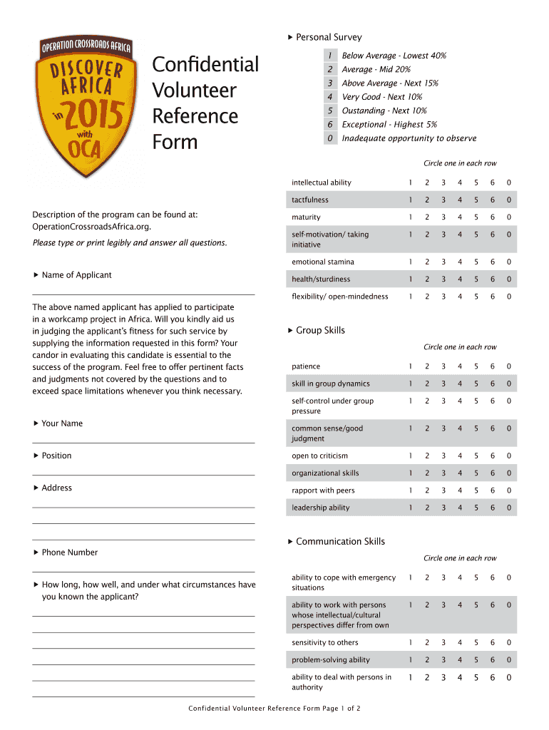 Any individual who has been asked to provide a reference for a volunteer applicant can complete the Confidential Volunteer Reference Form. It is particularly targeted at those who can evaluate the applicant's relevant skills and experiences.