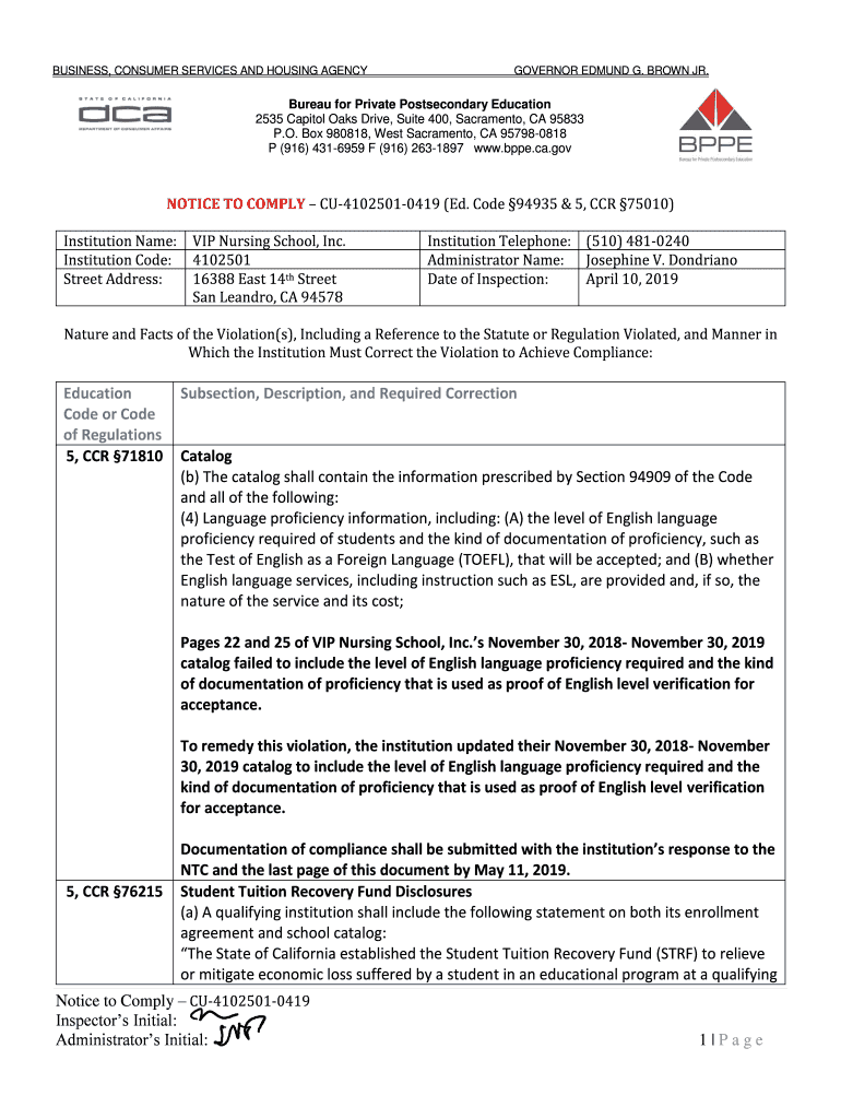 Get the free Bureau for Private Postsecondary Education - Inspection Results. Bureau for Private ...