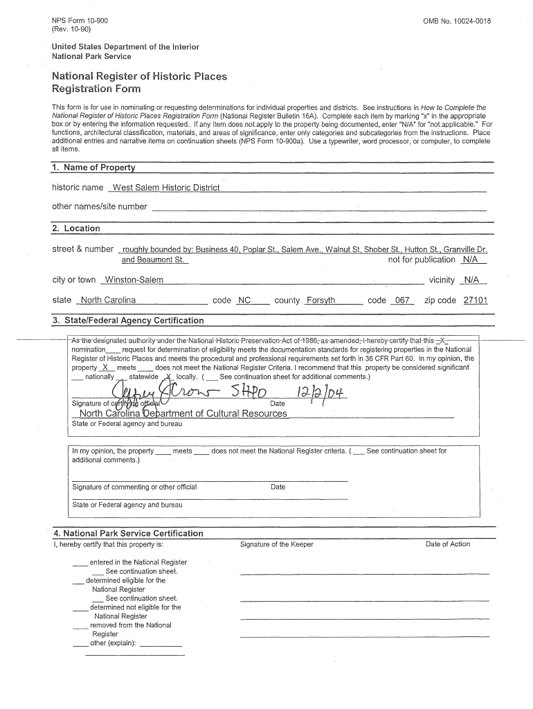 NPS Form 10900 (Rev. 1090)OMB No. 100240018United States Department of the Interior National Park Services form is for use in nominating or requesting determinations for individual properties and