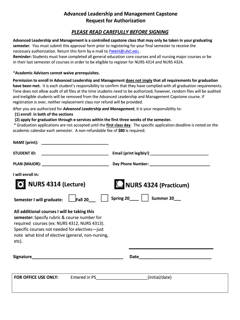 Advanced Leadership and Management is a controlled capstone class that may only be taken