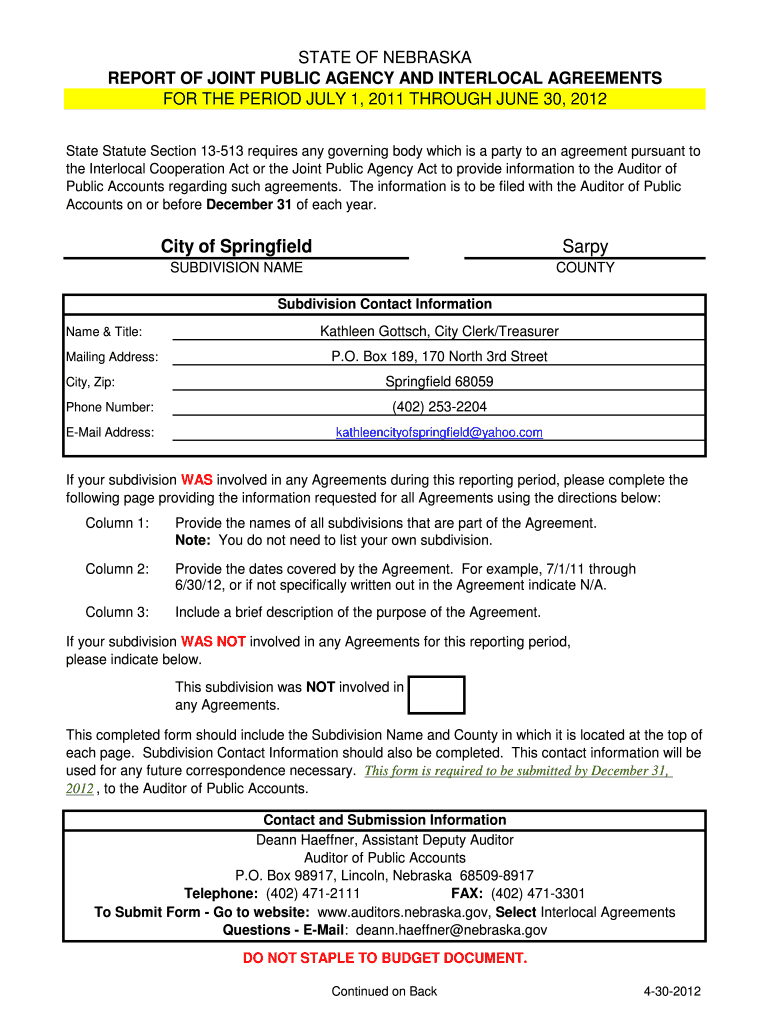 To fill out the Sarpy City of Springfield form, follow these steps: