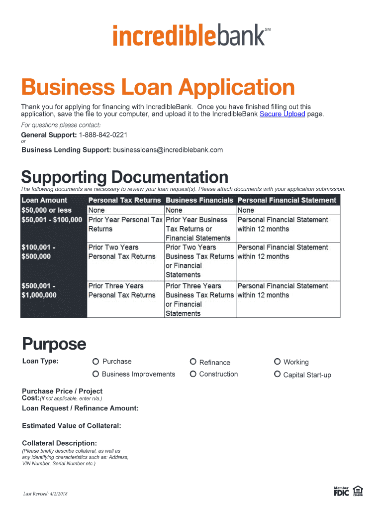 Business Loan ApplicationThank you for applying for financing with IncredibleBank. Once you have finished filling out this