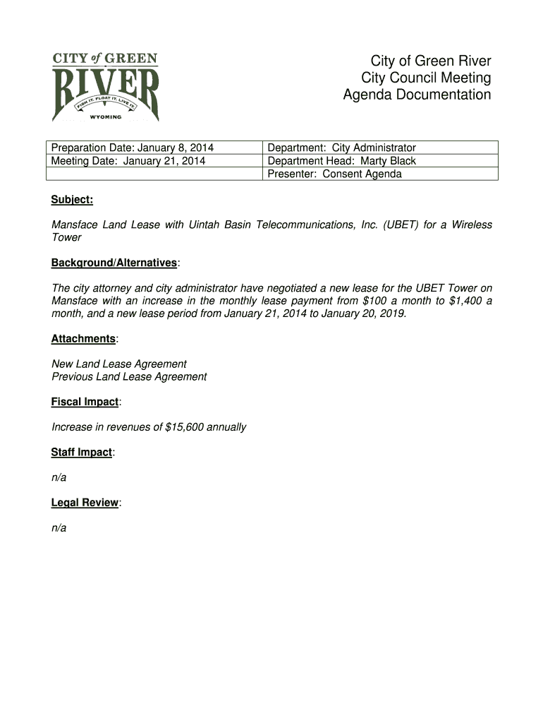 Get the free Agenda Form for Uinta Basin Electronic Telecommunications Mansface Lease