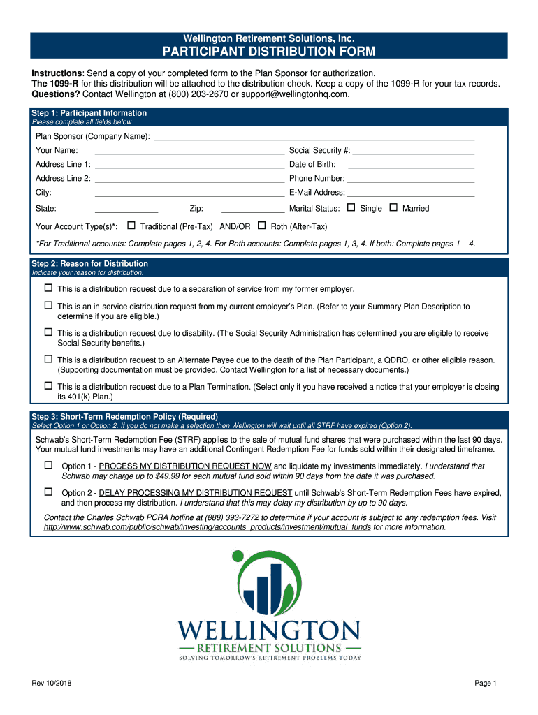 Wellington Retirement Solutions, Inc. PARTICIPANT DISTRIBUTION FORM
