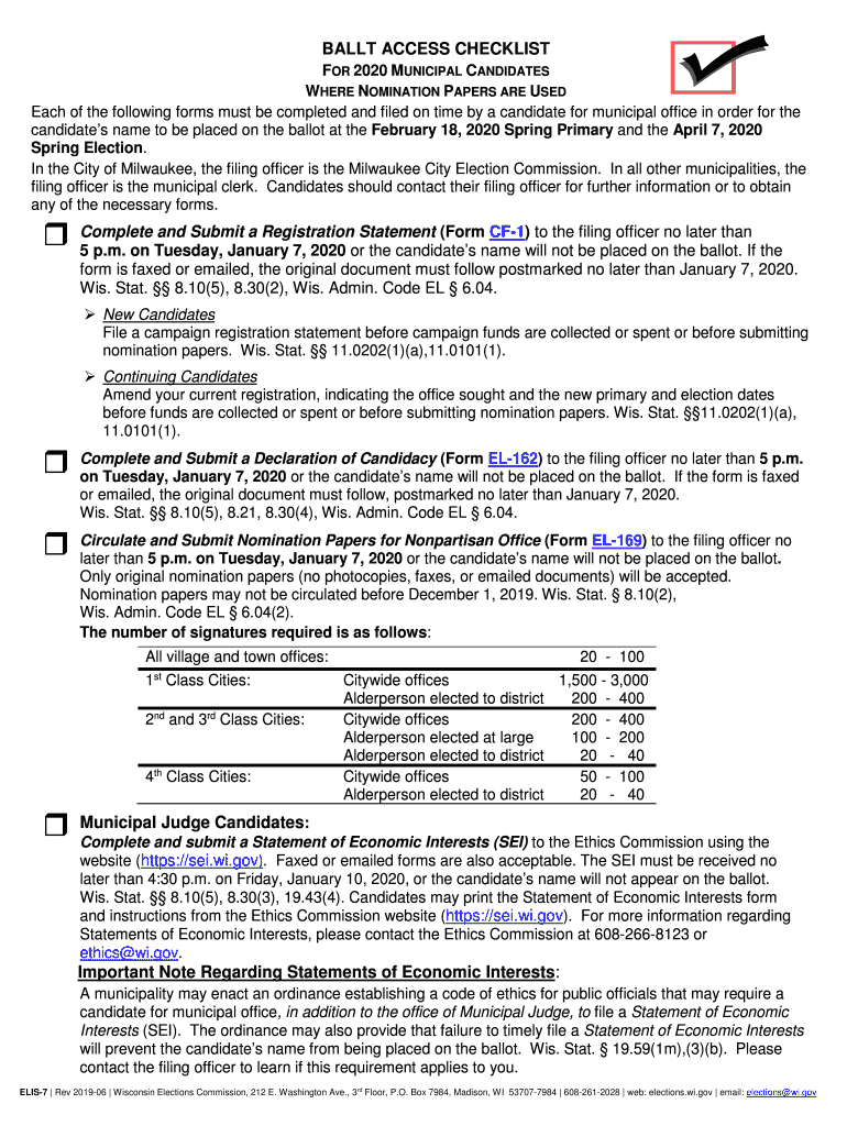 Each of the following forms must be completed and filed on time by a candidate for municipal office in order for