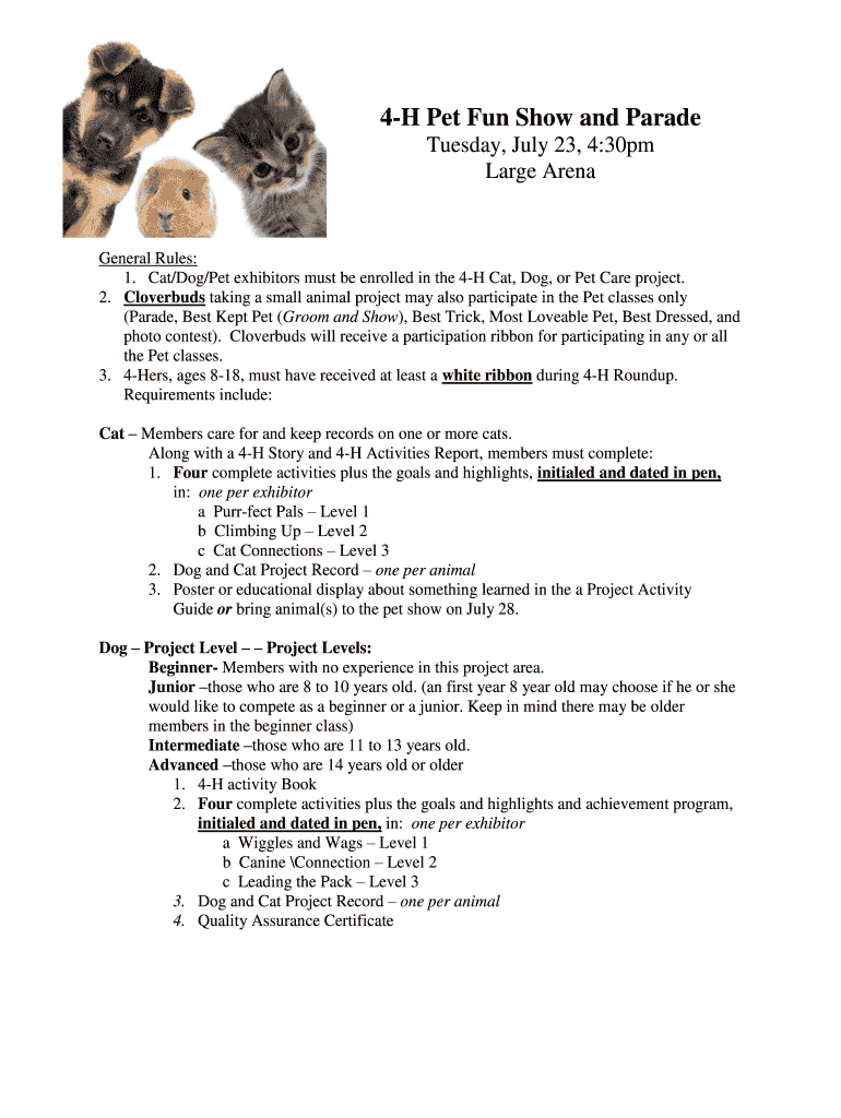Fill out your 4-h pet fun show online with pdfFiller!