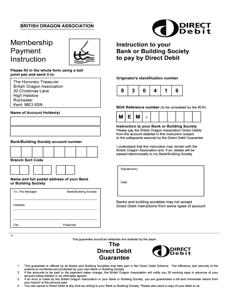 Members of the British Dragon Association are required to file their membership forms and pay any applicable fees.