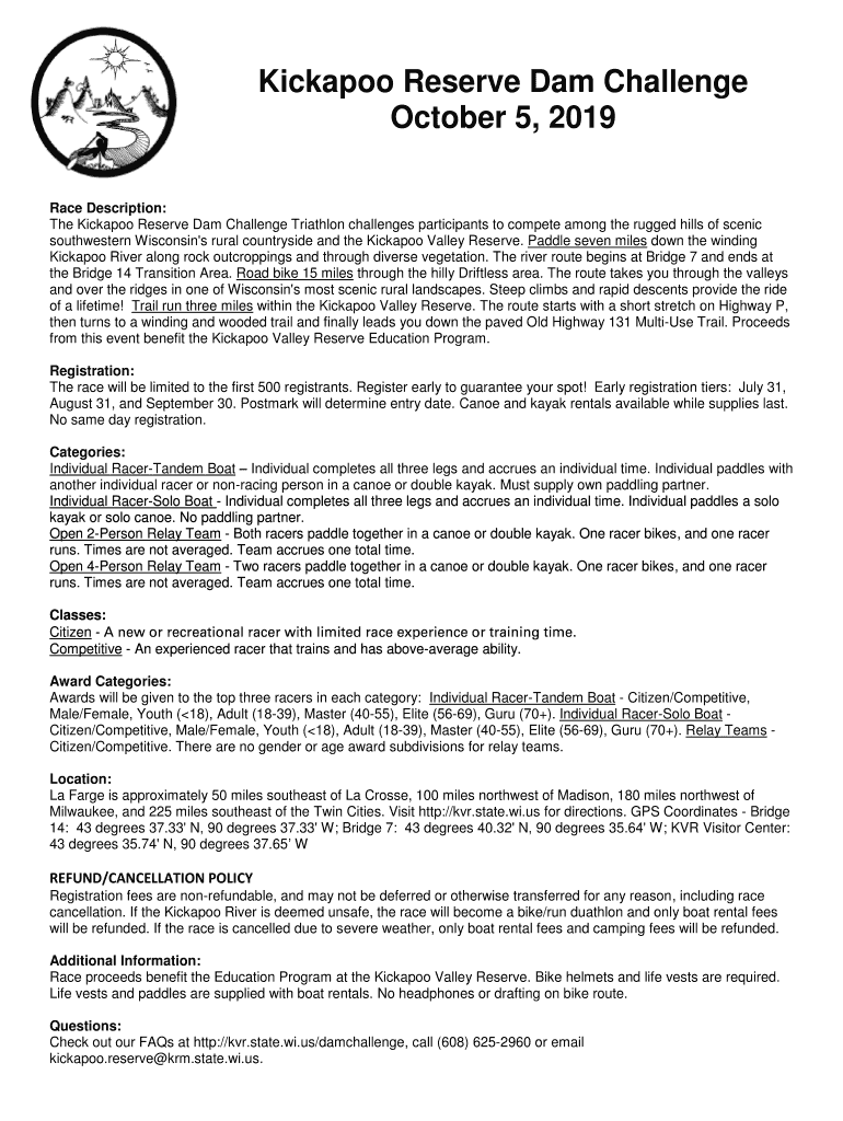 The Kickapoo Reserve Dam Challenge Triathlon challenges participants to compete among the rugged hills of scenic