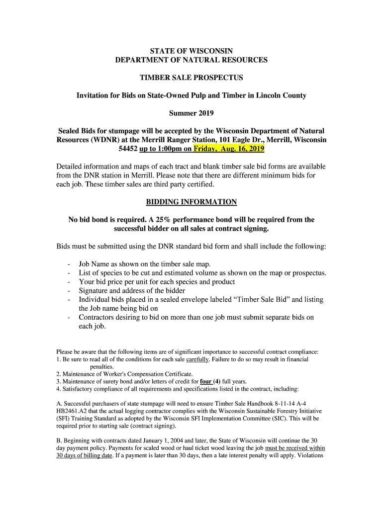 Get the free August 16, 2019 Lincoln County Timber Sale. Timber Sales - dnr wi
