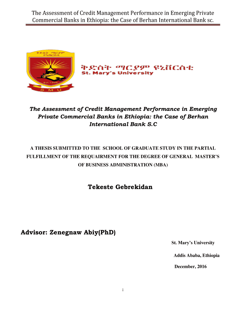 Get the free IMPACT OF CREDIT RISK ON THE PERFORMANCE OF COMMERCIAL ... - repository smuc edu