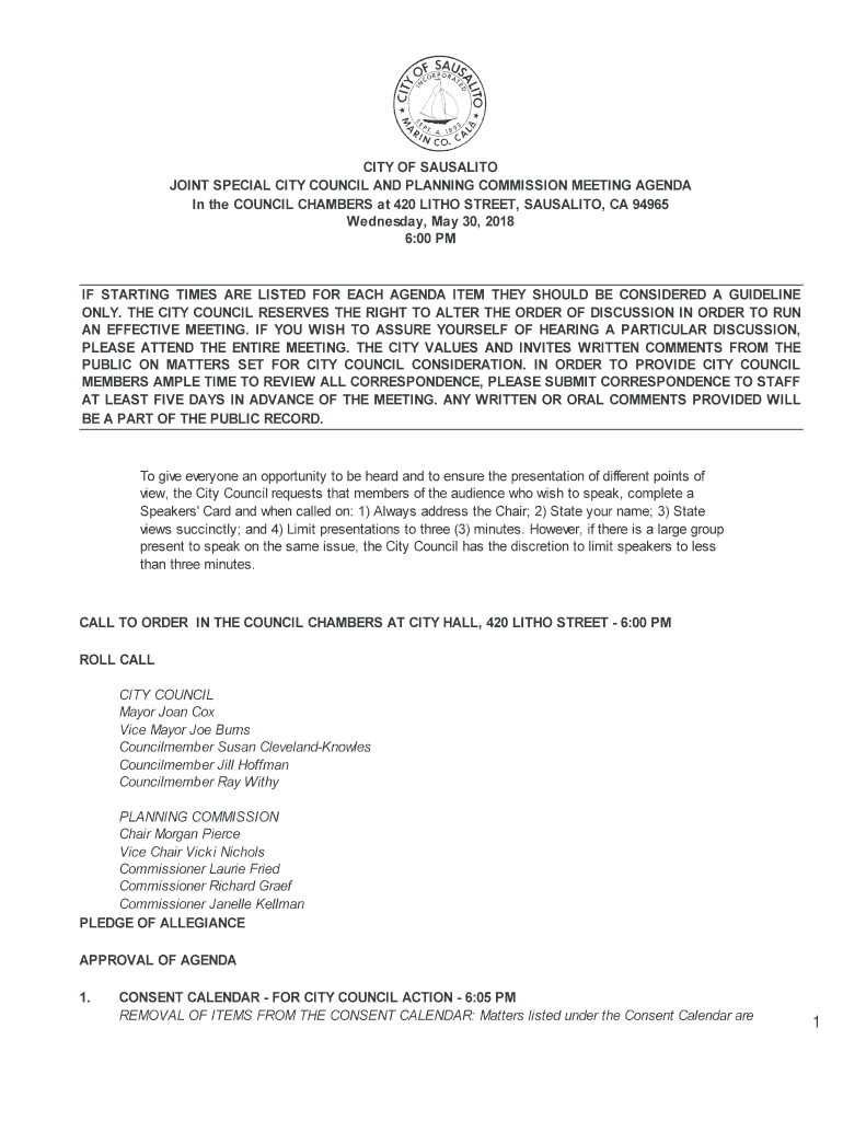 JOINT SPECIAL CITY COUNCIL AND PLANNING COMMISSION MEETING AGENDA