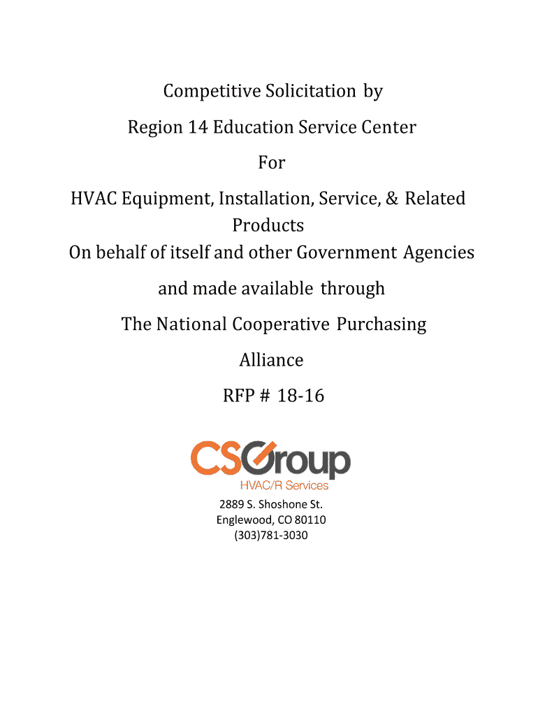 Competitive Solicitation region 14 Education Service Center Format Equipment, Installation, Service, & Related Products On behalf of itself and other Government Agencies and made available through