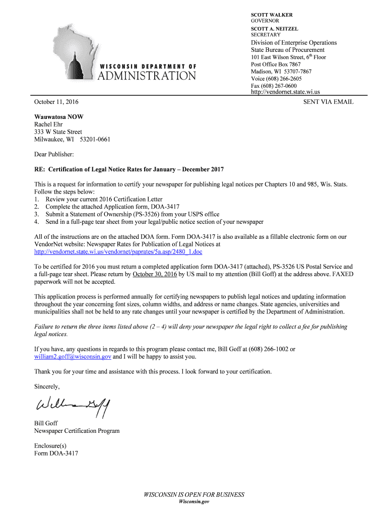 SCOTT WALKER GOVERNOR SCOTT A. NEITHER SECRETARYDivision of Enterprise Operations State Bureau of Procurement101 East Wilson Street, 6th Floor Post Office Box 7867 Madison, WI 537077867 Voice (608)