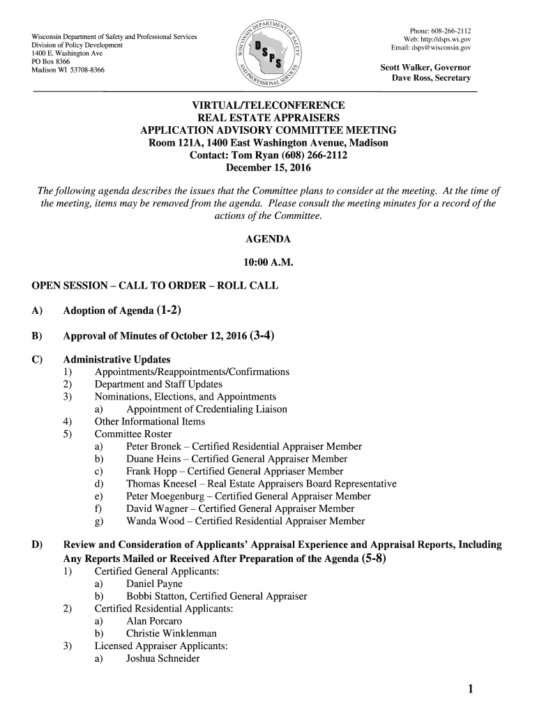 Get the free 20161215 REA Appl Agenda - Wisconsin Department of ... - dsps wi