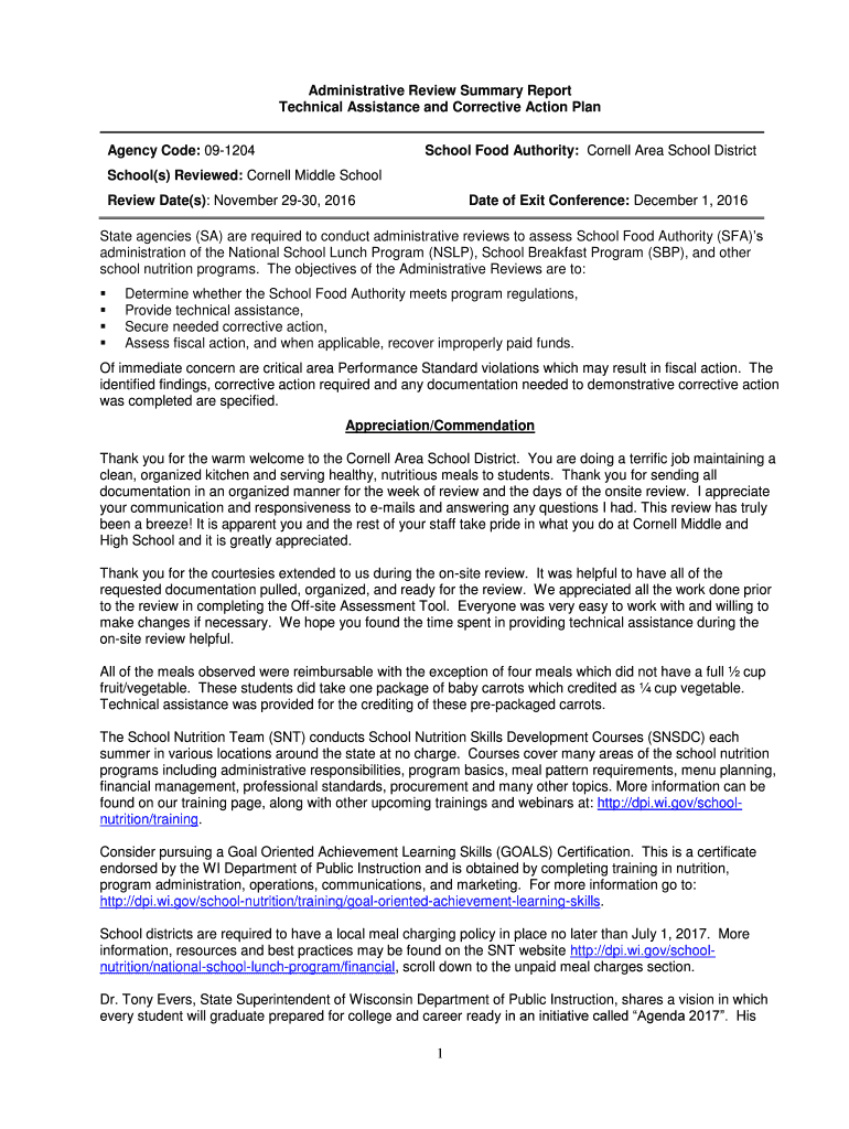 Get the free Technical Assistance and Corrective Action Plan - dpi wi