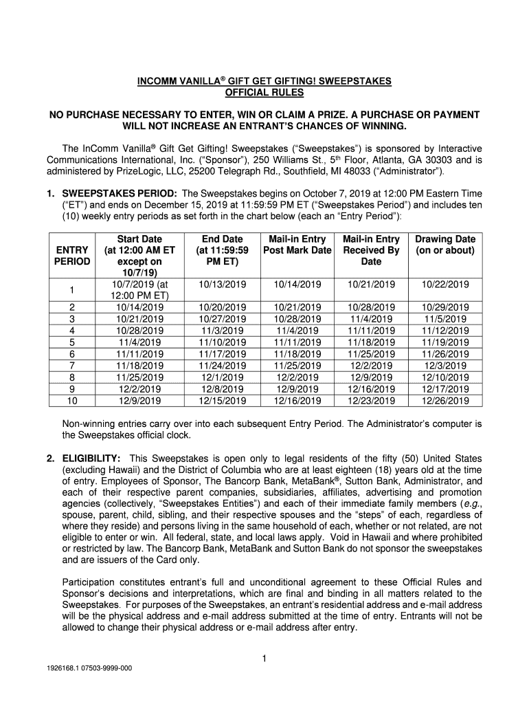 Get the free InComm Vanilla Gift Get Gifting! Sweepstakes- Official Rules