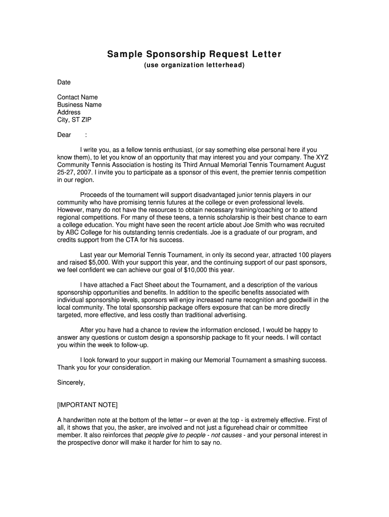 Get the free Online Sample Sponsorship Request Letter - USTA ...