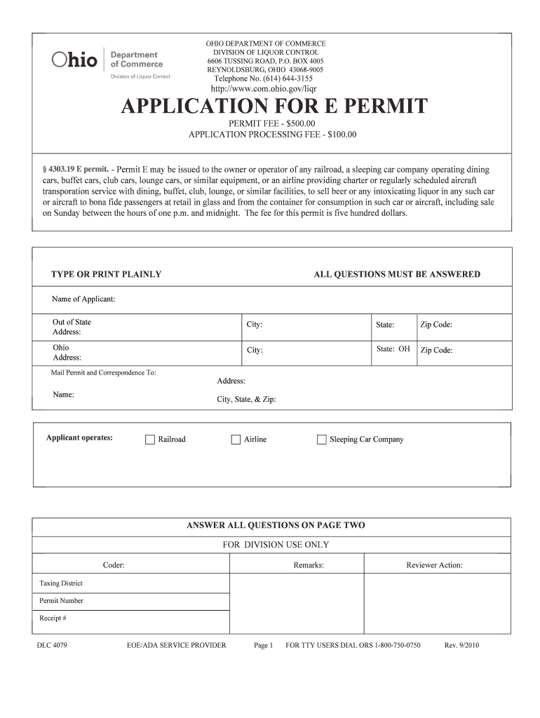 OHIO DEPARTMENT OF COMMERCE DIVISION OF LIQUOR CONTROL 6606 TOSSING ROAD, P.O. BOX 4005 REYNOLDSBURG, OHIO 430689005Telephone No. (614) 6443155http://www.com.ohio.gov/liqrAPPLICATION FOR E PERMIT