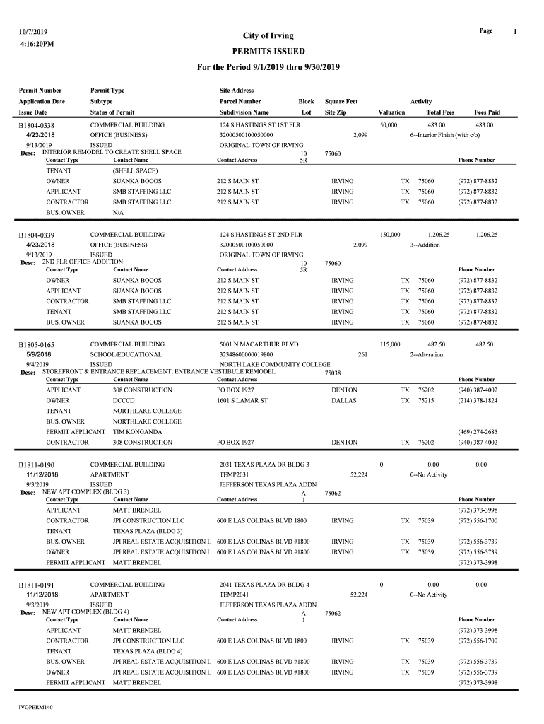 10/7/2019PageCity of Irving4:16:20PMPERMITS ISSUED