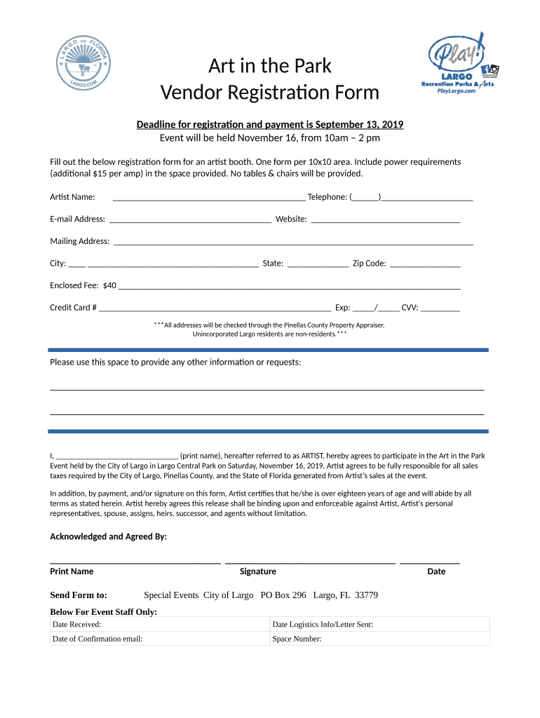 Get the free Art in the Park Vendor Registration Form - Largo