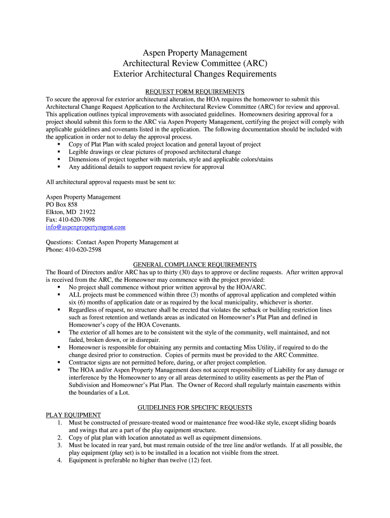 Property owners or tenants who wish to make architectural changes to a property are required to file the architectural request form.