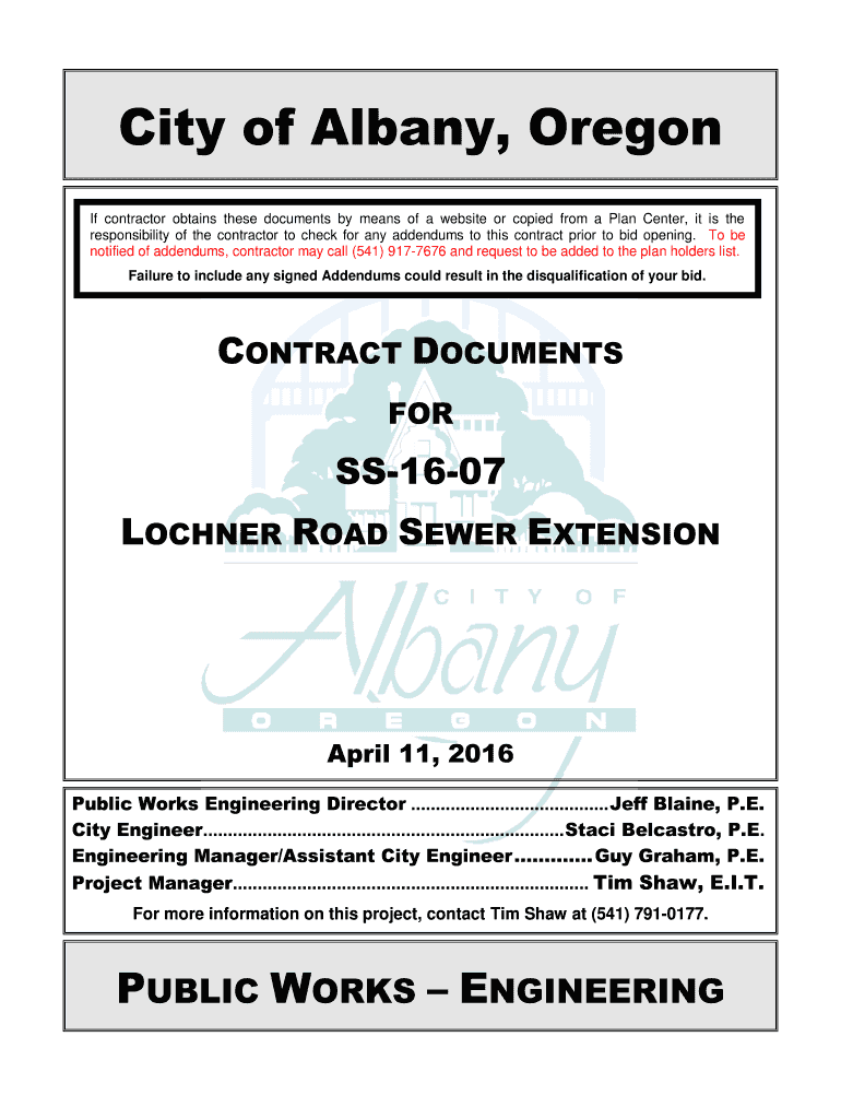 City of Albany, Oregon If contractor obtains these documents by means of a website or copied from a Plan Center, it is the responsibility of the contractor to check for any addendums to this contract