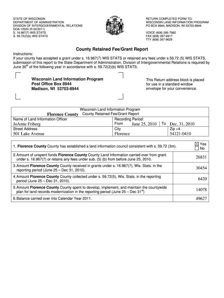 Get the free Wisconsin Land Information Program County Retained Fee ... - doaftp1380 wi