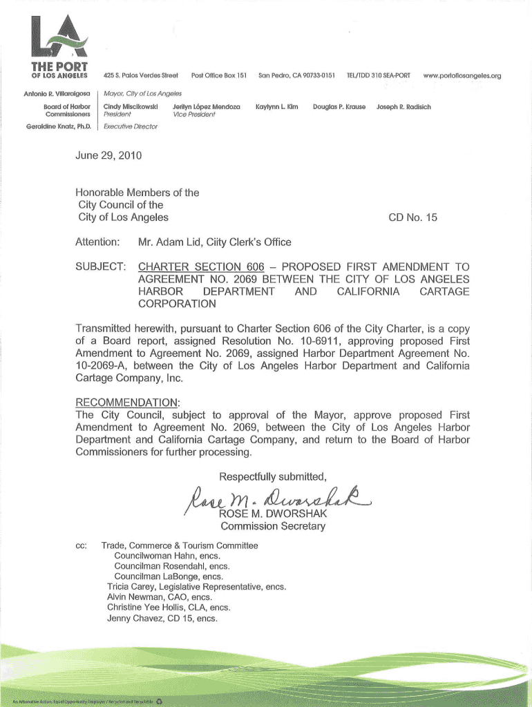 THE PORTO LOS ANGELESAntonio R. Villaraigosa425 S. Palos Verdes Street Post Office Box 151San Pedro. CA 907330151TEL/TDD 310 Seaport.porloflosongeles.mayor, City of Los AngelesBoard of Harbor