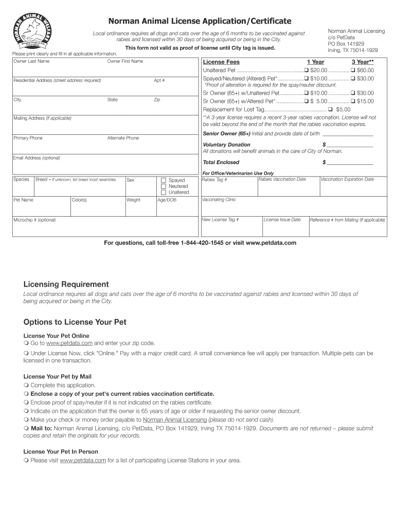 Get the free Norman Animal License Application/Certificate ... - PetData