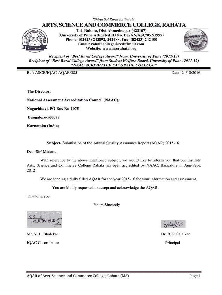 (University of Pune Affiliated ID No. PU/AN/ASC/052/1997)