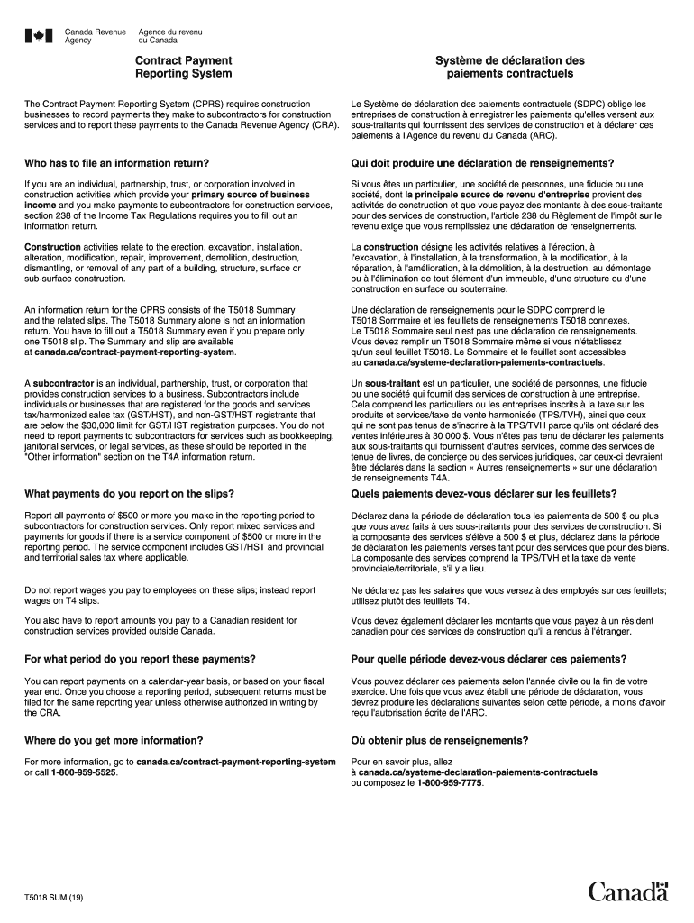 Contract Payment Reporting SystemSystme de declaration DES pavements contractuelsThe Contract Payment Reporting System (CARS) requires construction businesses to record payments they make to subcontractors