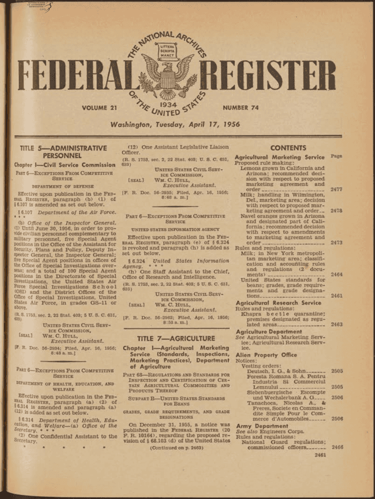 Nam * J UTTER SCRIPT I M NET I 7I J×FEDERAL VOLUME 21REGISTER O / v FTE D NUMBER 74Washington, Tuesday, April 17, 1956(12) One Assistant Legislative Liaison Officer. TITLE 5 ADMINISTRATIVE PERSONNEL