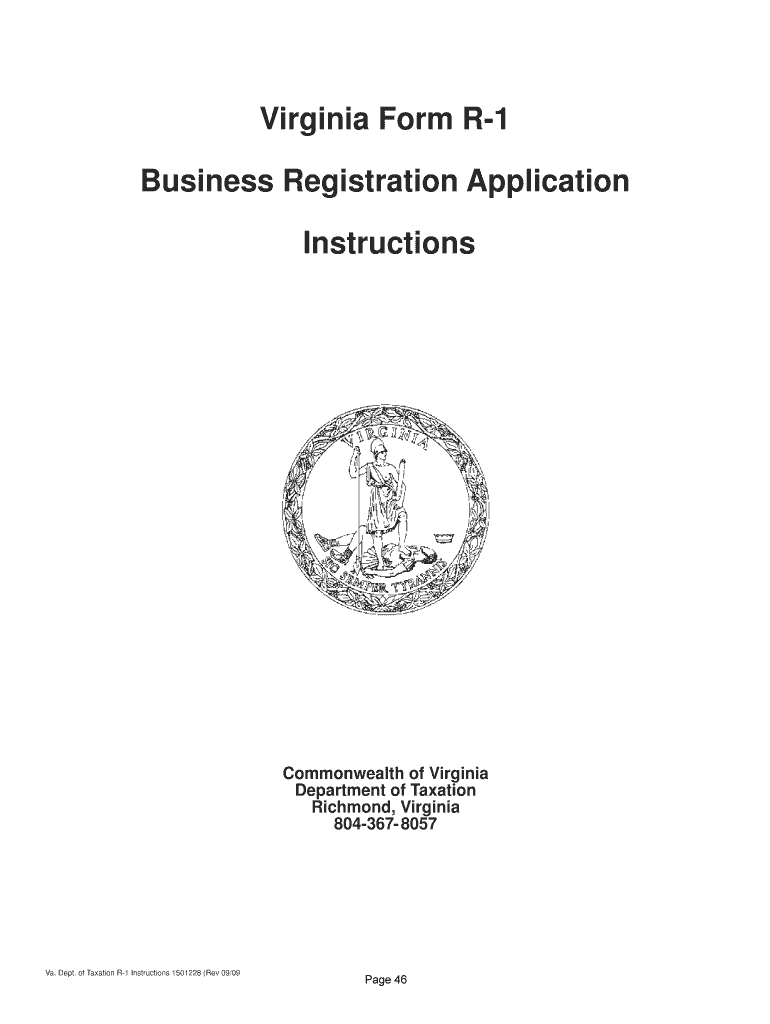 Virginia Form R1 Business Registration Application Instructions Commonwealth of Virginia Department of Taxation Richmond, Virginia 804367 8057Va. Dept. of Taxation R1 Instructions 1501228 (Rev 09/09Page