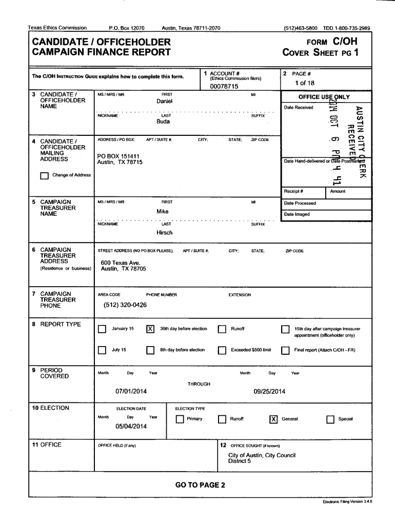 Texas Ethics Commission. O. Box 12070Austin, Texas 787112070(512)4635800FORM C/CANDIDATE / OFFICEHOLDER