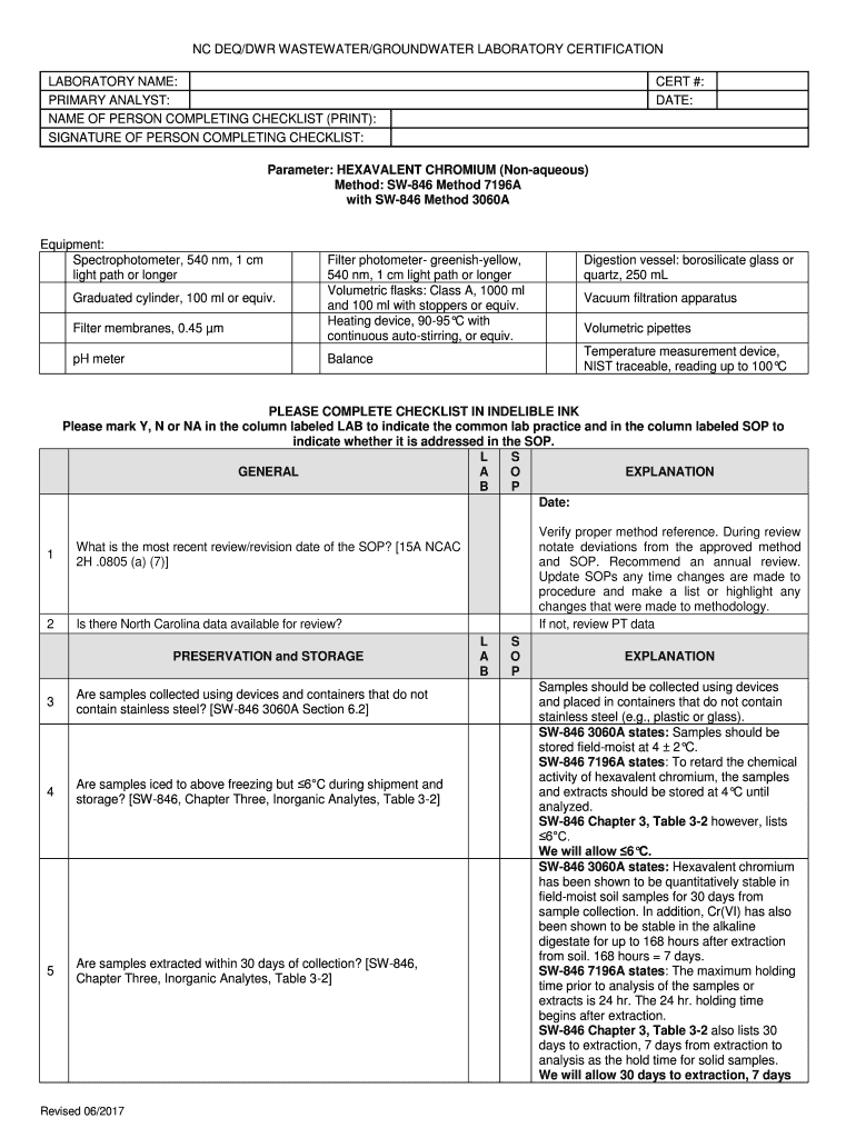 Get the free Non-Field Checklists - NC DEQ