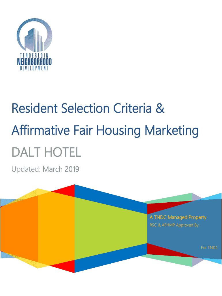 Resident Selection Criteria & Affirmative Fair Housing Marketing SALT HOTEL Updated: March 2019A TDC Managed Property RSC & AF HMP Approved By:For TNDCDALT HOTEL Resident Selection Criteria & Affirmative