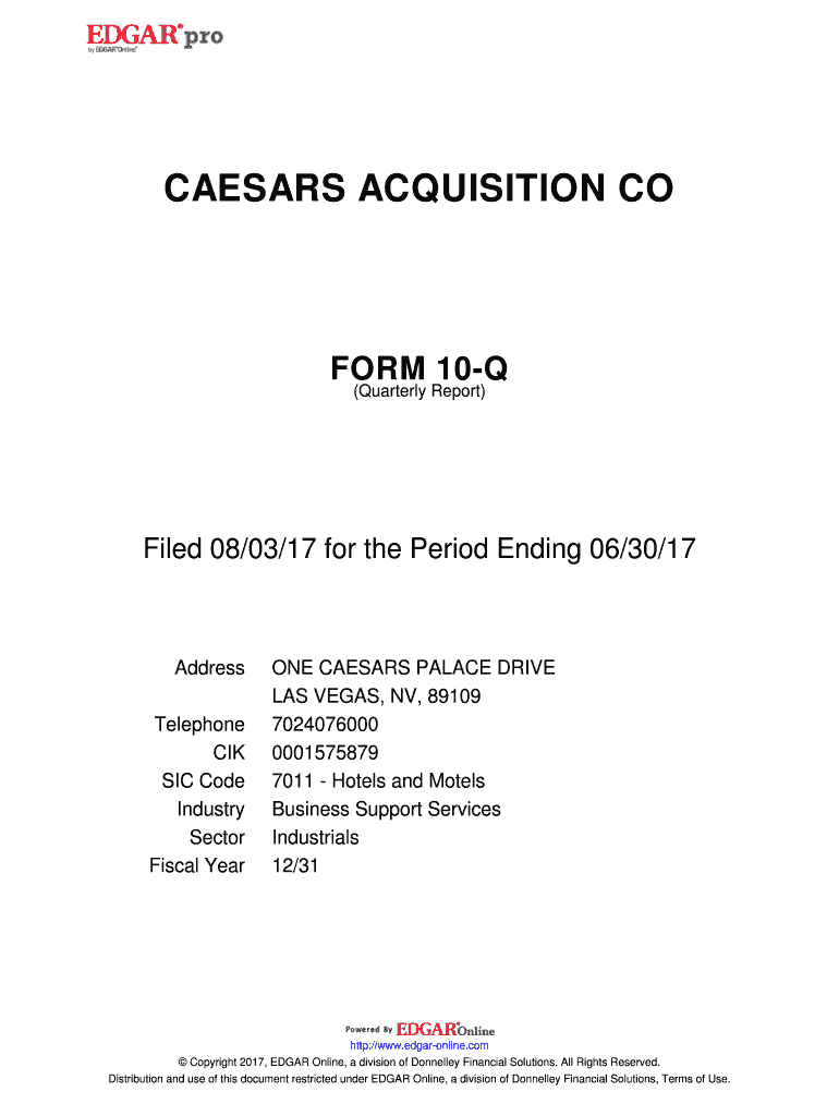 Get the free CAESARS ACQUISITION CO. FORM 10-Q (Quarterly Report) Filed 08/03/17 for the Period E...