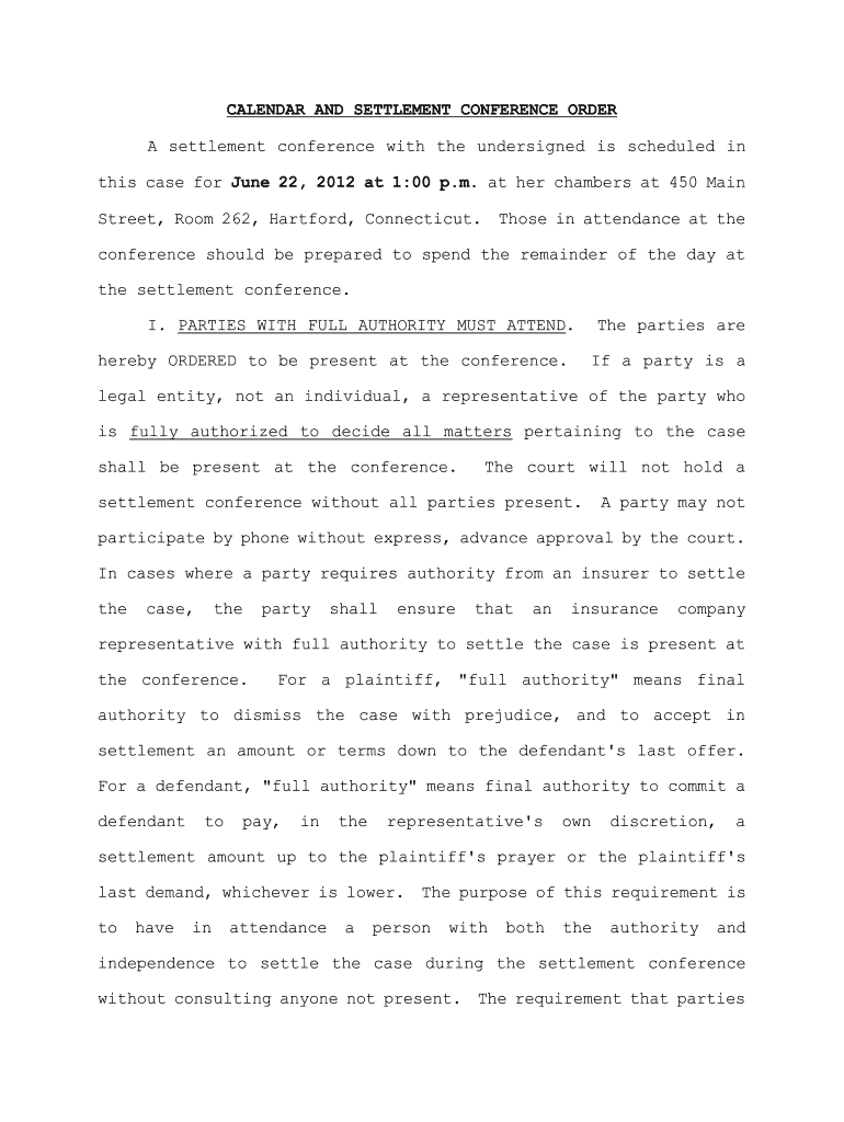 CALENDAR AND SETTLEMENT CONFERENCE ORDER