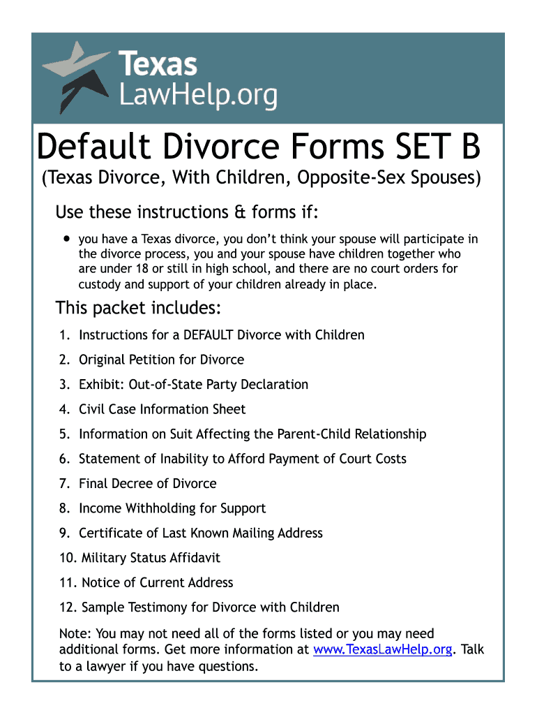 Divorce set b is a set of legal documents required to be filed with the court in a divorce proceeding.