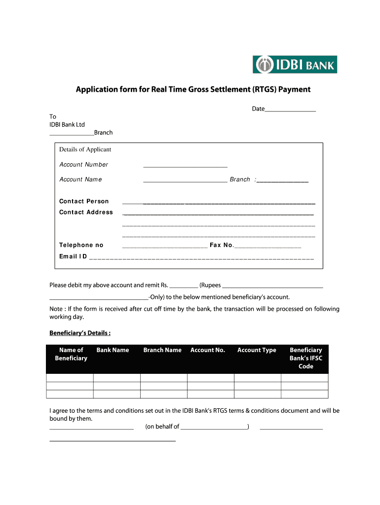 Get the free Application form for Real Time Gross Settlement (RTGS) Payment - management ind