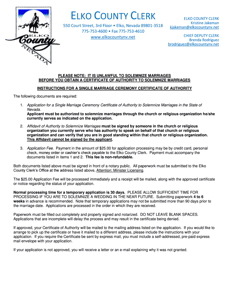 ELK COUNTY CLERK 550 Court Street, 3rd Floor Elk, Nevada 898013518 7757534600 Fax 7757534610 www.elkocountynv.netELKO COUNTY CLERK Kristine Jake man brakeman elkocountynv.net CHIEF DEPUTY CLERK Brenda