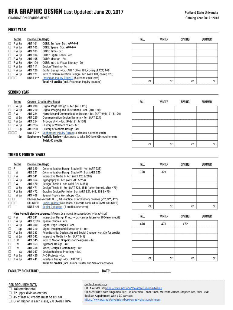 BFA GRAPHIC DESIGN Last Updated: June 20, 2017Portland State University Catalog Year 20172018GRADUATION REQUIREMENTSFIRST YEAR Terms F W Sp F W Sp F W Sp F W Sp F W Sp F W Sp F W Sp F W Sp F W Sp