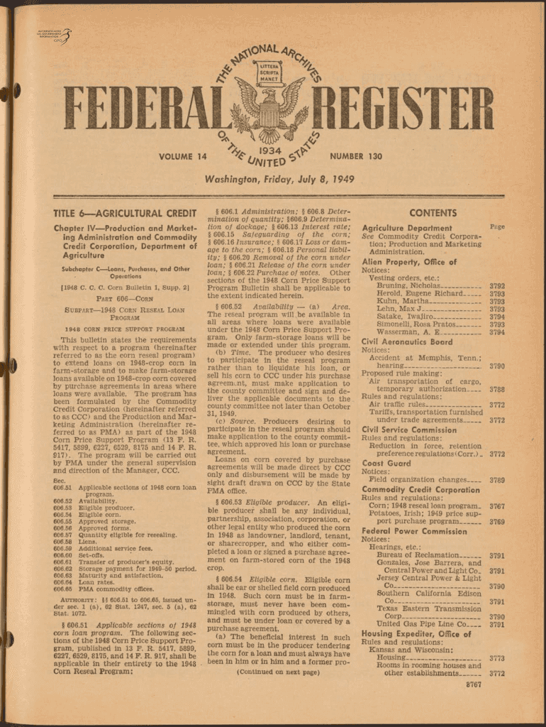 . O N A L 4 *VOLUME 14 N Lt tONUMBERWashington, Friday, July 8, 1949TITLE 6 AGRICULTURAL CREDIT Chapter IV Production and Market ING Administration and Commodity Credit Corporation, Department of