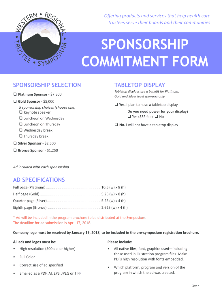 Offering products and services that help health care trustees serve their boards and their communitiesSPONSORSHIP COMMITMENT FORM SPONSORSHIP SELECTIONTABLETOP DISPLAY Platinum Sponsor $7,500Tabletop