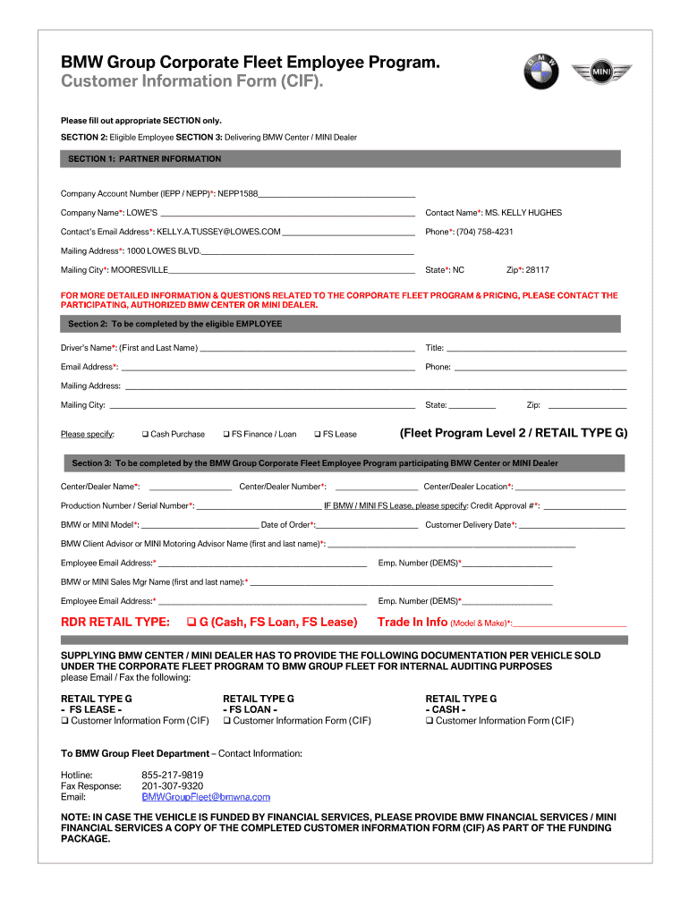 Bmw Employee Lease Program is not the form you're looking for?Search for another form here.