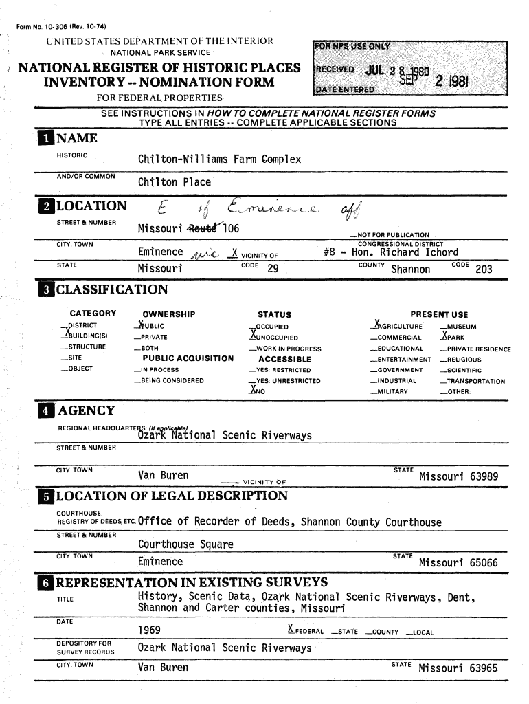 Form No. 10306 (Rev. 1074)UNITED STATES DEPARTMENT OF THE INTERIOR NATIONAL PARK SERVICENATIONAL REGISTER OF HISTORIC PLACES INVENTORY NOMINATION FORM FOR FEDERAL PROPERTIES SEE INSTRUCTIONS IN HOW
